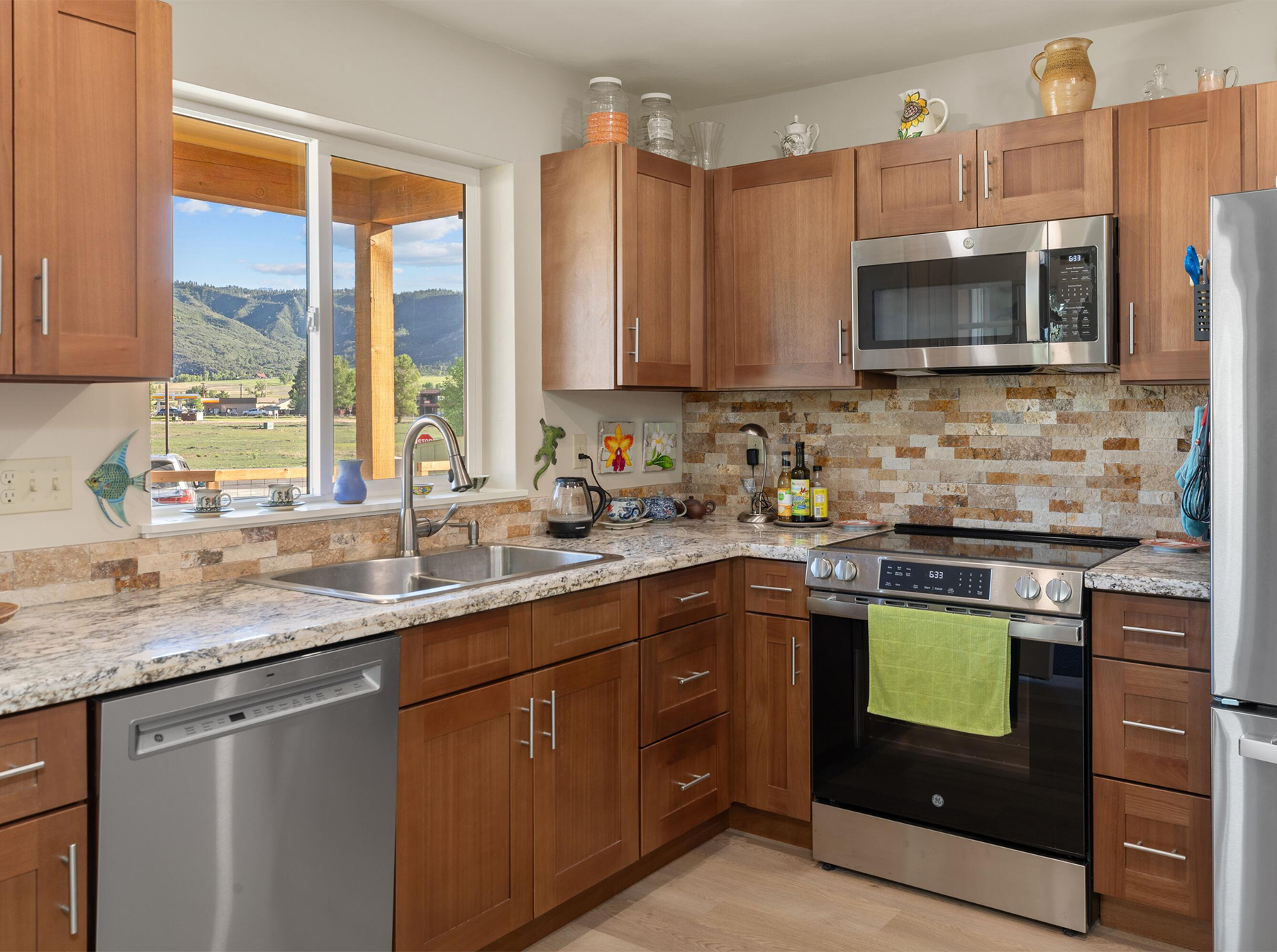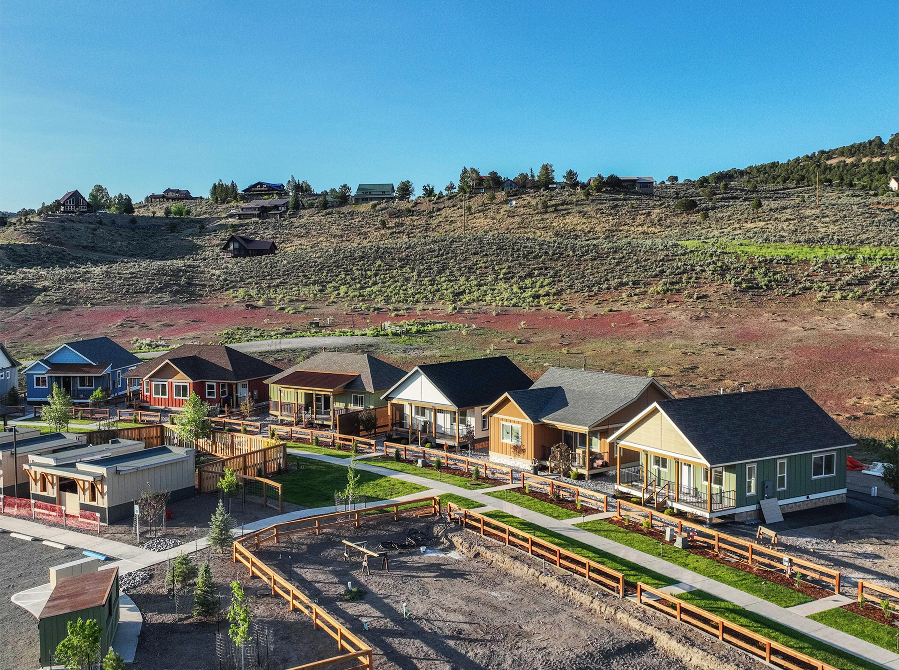 This project is well designed to be a friendly neighborhood atmosphere. The designer,Joe Nelson, has created user friendly homes that are layed out with care so the rooms are very useable and attractive. Each house has a front porch with views of the mountains. Designated outdoor parking spots and storage for each house. Different paint colors on the exterior gives the house a village feel.